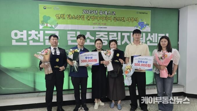 케이부동산뉴스 김교민 기자 | 연천군 탄소중립지원센터는 지난 9월 19일, ‘유네스코 연천 탄소중립 군정 아이디어 공모전’ 시상식을 개최했다. 이번 공모전은 기후 위기 극복과 탄소중립 실현을 위한斬신하고 실천 가능한 군정 아이디어를 발굴하기 위해 추진됐다.