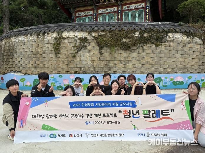 케이부동산뉴스 김교민 기자 | 안성시자원봉사센터 소속 대학생 봉사단 ‘드림런 화채(花彩)’가 지난 9월 27일과 10월 4일 이틀간 안성시 보개면 영평사에서 제2차 벽화 봉사활동을 진행했다.