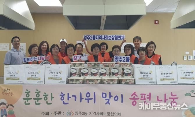 케이부동산뉴스 김교민 기자 | 양주시 양주2동 지역사회보장협의체가 최근 추석을 맞아 관내 취약계층 100가구를 대상으로 송편을 전달했다.