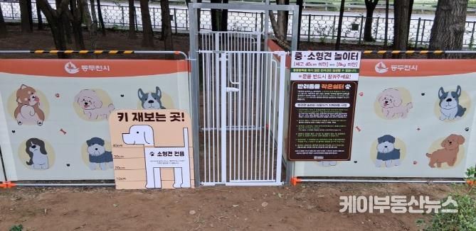 케이부동산뉴스 김교민 기자 | 동두천시는 반려견과 시민이 함께 어울릴 수 있는 반려동물 문화공간을 조성하기 위해 강변로 156(강변근린공원 내)에 반려견 간이놀이터(이동식 울타리)를 설치하고 시범운영에 들어갔다고 밝혔다.