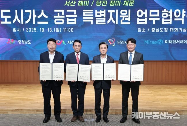 케이부동산뉴스 김교민 기자 | 당진시는 13일 충남도청 대회의실에서 충청남도, 미래앤서해에너지와 함께 도시가스 공급 특별지원 업무협약(MOU)을 체결했다고 밝혔다.