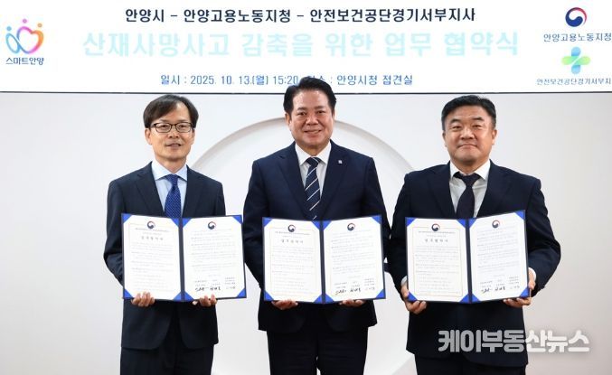 케이부동산뉴스 김교민 기자 | 안양시가 13일 고용노동부 안양지청, 안전보건공단 경기서부지사와 산재사망사고 감축을 위한 업무협약을 체결했다.