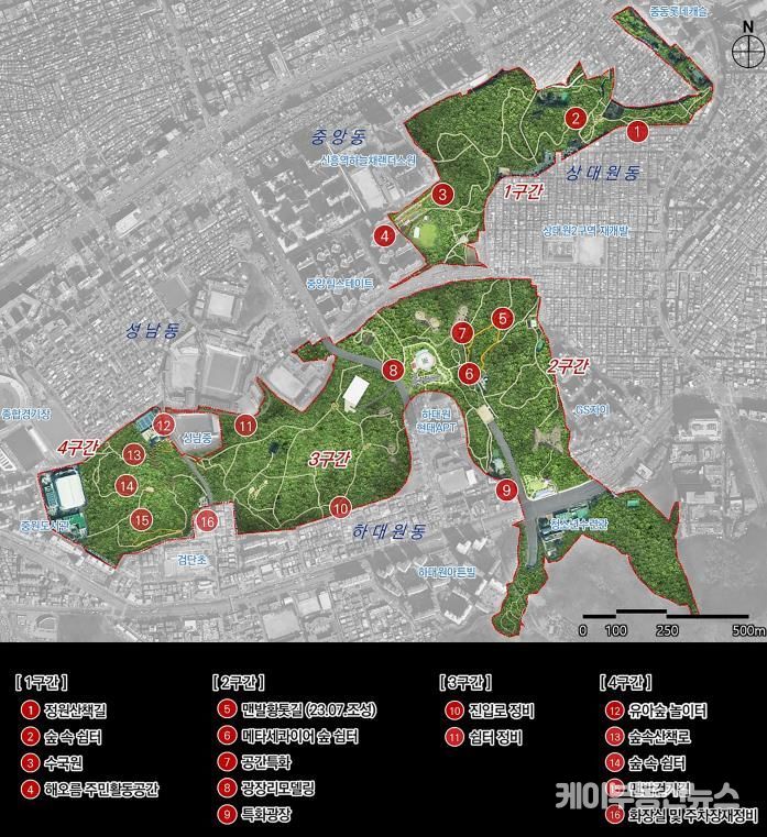 시는 대원공원 내 미정비 공원 부지를 중심으로 중앙·하대원·성남동 구간을 1~4구간으로 특화했다.