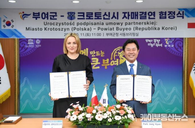 케이부동산뉴스 김교민 기자 | 부여군)은 지난 11일 부여군청에서 폴란드 비엘코폴스카주 크로토신시 대표단을 공식 초청해 자매결연 협정을 체결했다.