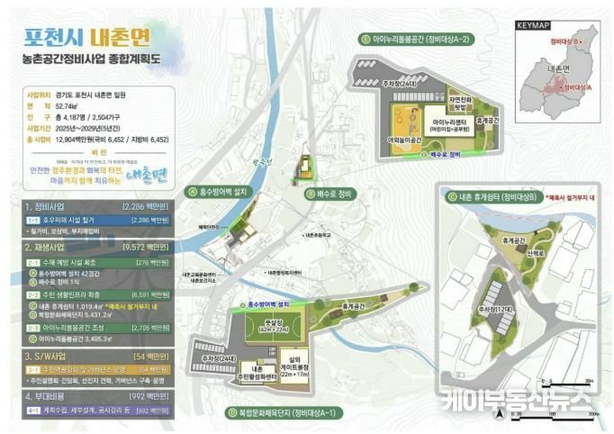 케이부동산뉴스 김교민 기자 | 포천시가 농림축산식품부가 추진한 ‘2025년 농촌공간정비 추가공모사업’에 선정되어, 2029년까지 내촌면 일원에서 추진할 공간정비사업 예산 129억 원을 확보했다.