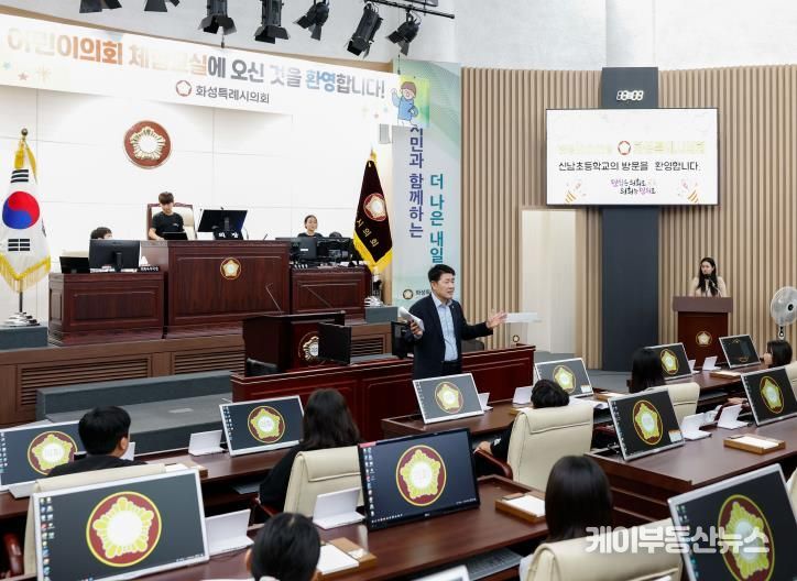 케이부동산뉴스 김교민 기자 | 화성특례시의회는 13일, 남양읍에 위치한 신남초등학교 학생들을 대상으로 ‘어린이의회 체험 교실’을 운영했다.