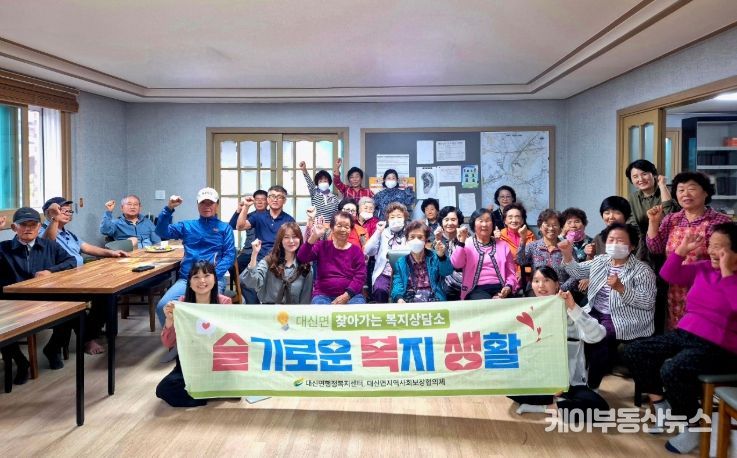 한편 대신면 행정복지센터는 주민 밀착형 복지 실현을 위해 매월 1회 마을 경로당을 찾아가 복지상담소 슬복생을 운영하고 있으며 앞으로도 지역 주민들의 삶의 질 향상과 복지 사각지대 해소를 위해 다양한 맞춤형 복지서비스를 제속적으로 제공할 계획이다.