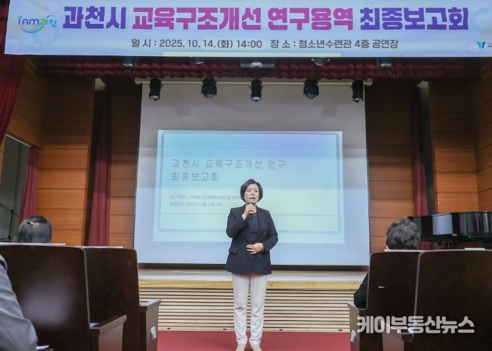 케이부동산뉴스 김교민 기자 | 과천시는 지난 14일 과천시청소년수련관 4층 공연장에서 ‘과천시 교육구조개선 연구용역 최종보고회’를 개최했다.