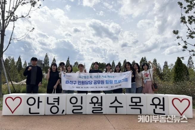 케이부동산뉴스 김교민 기자 | 수원시 권선구는 지난 14일부터 16일까지, 3일간 일월수목원에서 민원 담당 공무원을 위한 '권선구 민원담당 힐링프로그램'을 운영했다.