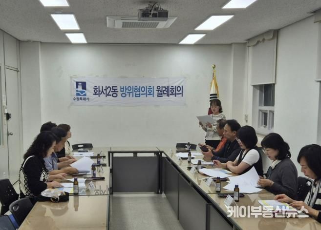 케이부동산뉴스 김교민 기자 | 수원시 팔달구 화서2동은 10월 14일 오후 7시, 행정복지센터 2층 소회의실에서 ‘화서2동 방위협의회 10월 월례회의’를 개최했다. 이날 회의에는 황성준 화서2동 방위협의회 위원장을 비롯한 위원 10여 명이 참석해 지역 안보 현안과 시정 홍보사항을 공유했다.