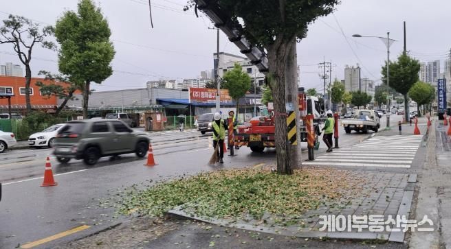 이번 작업은 고소 작업차를 활용해 인력이 직접 열매를 채취하는 방식으로 진행되며, 미숙한 열매까지 한 번에 제거해 추가 낙과를 방지할 계획이다.
