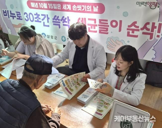 케이부동산뉴스 김교민 기자 | 양평군은 15일 ‘세계 손 씻기의 날’을 기념해, 양동면 쌍학 2리 마을회관에서 ‘달리는 행복나눔이웃들’ 운영과 연계한 유관기관 합동 홍보 캠페인을 실시했다.