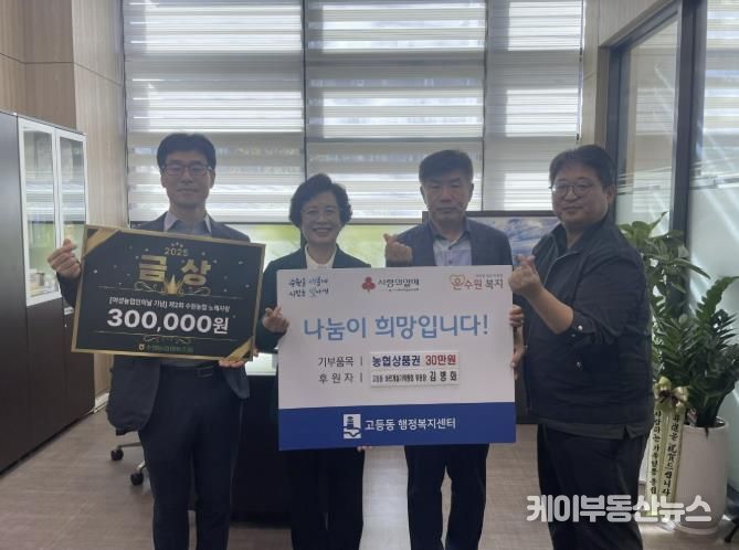 이번 기부는 관내 어려운 이웃들에게 따뜻한 나눔을 전하고자 하는 개인의 뜻에 따라 전달된 상품권은 고등동 관내 취약계층에게 지원될 예정이다.