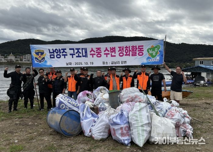 케이부동산뉴스 김교민 기자 | 남양주시는 19일 금남리 어촌계 선착장 일원에서 사단법인 한국해양구조협회 남양주구조대 주관으로 ‘수중·수변 정화활동’을 진행했다고 밝혔다.
