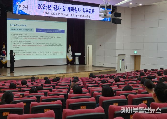 케이부동산뉴스 김교민 기자 | 광주시는 20일 시청 수어장대홀에서 전 직원을 대상으로 ‘2025년 감사 및 계약심사 직무교육’을 실시했다.