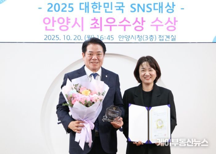 케이부동산뉴스 김교민 기자 | 안양시가 ‘제15회 2025 대한민국 SNS 대상’ 기초지방자치단체 시 부문에서 최우수상을 수상했다.