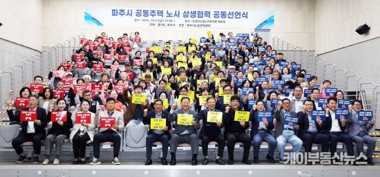 케이부동산뉴스 김교민 기자 | 아파트 경비원, 미화원 등 공동주택 노동자들의 초단기 계약 관행을 근절하기 위해 경기도와 파주시, 지난 17일 파주시 운정 다누림 노인복지관에서 ‘공동주택 노동자 상생 협력 선언식’을 개최했다.
