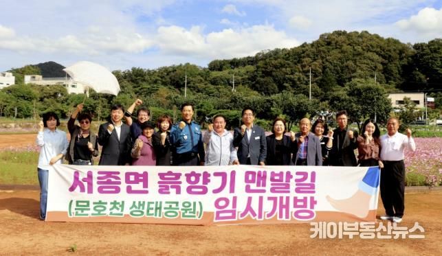 케이부동산뉴스 김교민 기자 | 양평군 서종면은 지난 17일 오후 1시, 서종면 문호리 968 일대 문호천 생태공원에서 ‘서종면 흙향기 맨발길’ 임시 운영을 기념하는 걷기 행사를 개최했다.