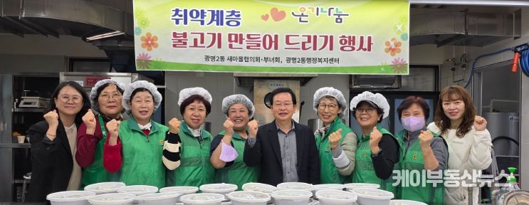 케이부동산뉴스 김교민 기자 | 광명시 광명2동 새마을부녀회는 지난 20일 광명2동 행정복지센터에서 ‘온기 나눔 사랑의 불고기’ 행사를 열었다.