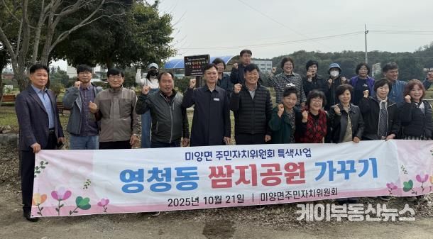 케이부동산뉴스 김교민 기자 | 지난 10월 21일 미양면 영청동 쌈지공원에서 주민자치위원회가 영청동 쌈지공원 현판식을 개최했다.