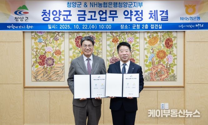 케이부동산뉴스 김교민 기자 | 청양군은 지난 22일 군청 접견실에서 NH농협은행 청양군지부와 차기 금고 업무 취급을 위한 약정식을 갖고 약정을 체결했다.