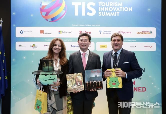 케이부동산뉴스 김교민 기자 | 이상일 용인특례시장은 23일 오후(현지 시간) '관광 혁신 서밋(Tourism Innovation Summit) 2025'가 열리고 있는 스페인 세비야의 피베스에서 호세 루이스 산스 세비야 시장에게 용인을 알리는 특별한 선물을 전달했다.