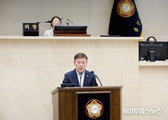 케이부동산뉴스 김교민 기자 | 용인특례시의회 황재욱 의원(보정동, 죽전1동, 죽전3동, 상현2동/더불어민주당)은 24일 열린 제296회 임시회 제2차 본회의 5분 자유발언을 통해, 죽전 물류센터 부지 매입 및 용도 변경과 관련한 시장의 공약 이행 여부와 향후 추진 계획을 밝혀줄 것을 요청했다.