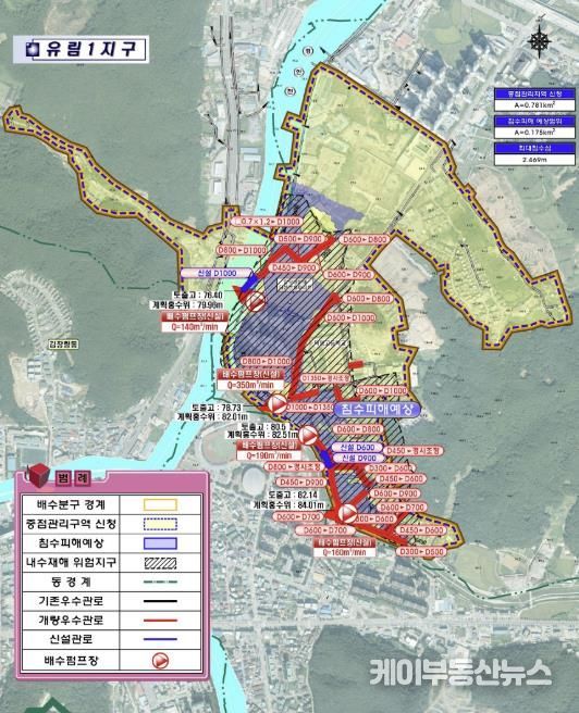 하수도정비 중점관리지역으로 지정된 ‘유림1지구 및 중앙지구’의 면적은 약 1.08㎢다. 이 지역은 하수관로의 통수 능력이 부족하고, 하천 수위가 상승할 경우 내수 배제가 어려운 지역으로 꼽혔다.