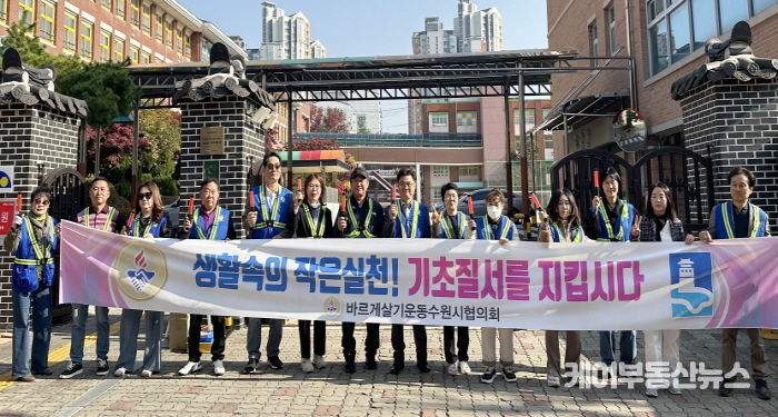 케이부동산뉴스 김교민 기자 | 수원시 영통구 바르게살기운동협의회는 지난 11월 7일, 매탄동 산남초등학교 앞에서 ‘기초질서 확립 캠페인’을 실시했다. 이는 일상 속에서 질서와 배려를 실천하는 시민 문화를 조성하고, 더불어 깨끗하고 안전한 생활환경을 만들어가기 위한 취지다.