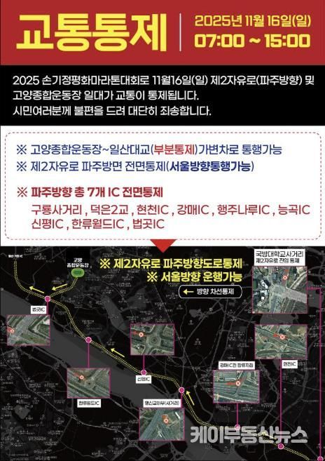 케이부동산뉴스 김교민 기자 | 고양특례시는 오는 16일(일) ‘2025. 손기정평화마라톤대회’ 개최에 따라 고양시 주요 도로 교통통제에 시민들의 적극적인 협조를 당부했다.
