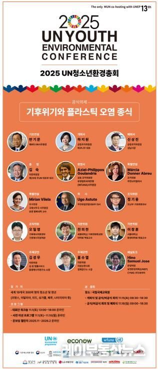 이번 ‘UN청소년환경총회’는 유엔환경계획(UNEP), (사)에코나우, 유엔협회세계연맹(WFUNA)이 주최하며, 우리나라를 포함해 프랑스, 이탈리아, 인도, 싱가포르, 페루, 케냐, 나이지리아 등 세계 19개국 300여 명의 청소년과 청년이 참여한다.