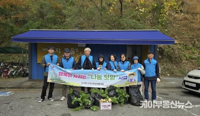 ‘행복이 자라는 나눔 텃밭’은 산본가야2차 아파트 단지 내 유휴 부지(약 140㎡)를 주택관리공단으로부터 제공받아, 협의체 위원들이 직접 다양한 농작물을 재배하고 수확하여 어려운 이웃과 나누는 수리동만의 특화사업이다. 올해는 8월에 가을무 모종을 심어 정성껏 가꾸어왔으며 풍성한 수확의 기쁨을 함께 나누게 됐다.