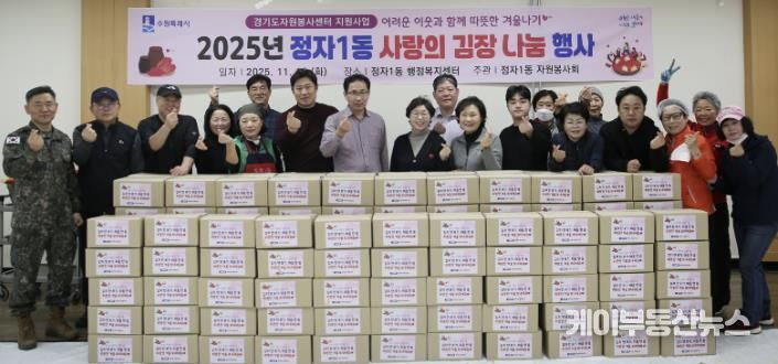 케이부동산뉴스 김교민 기자 | 수원시 장안구 정자1동은 지난 18일 지역 내 어려운 이웃들을 돕기 위한 ‘2025년 사랑의 김장 나눔’ 행사를 진행했다.