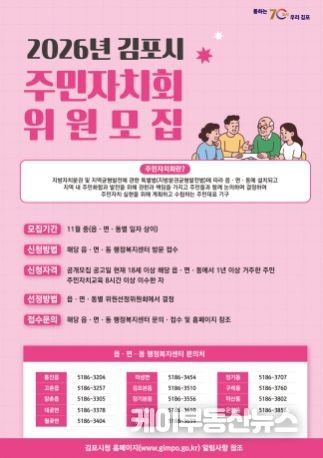 이번 모집은 주민자치회의 자율적 기반을 강화하고 자치역량을 높이기 위해 개정된 '김포시 주민자치회 및 주민자치센터 설치·운영에 관한 조례'에 근거해 추진된다. 김포시는 이번 조례 개정을 통해 주민자치회의 자율성과 전문성 강화를 통한 실질적 주민자치 실현의 기반을 마련했다.