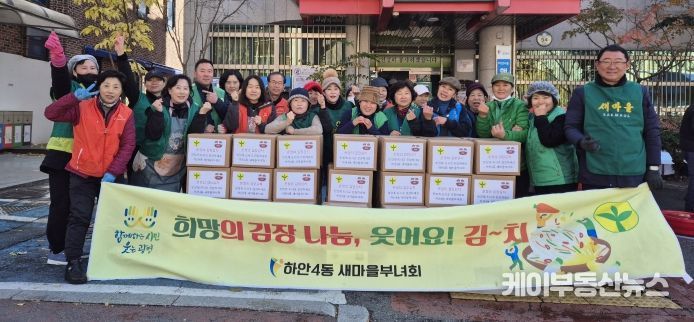 케이부동산뉴스 김교민 기자 | 광명시 하안4동 새마을부녀회는 지난 17일부터 18일까지 이틀간 하안4동 행정복지센터 주차장에서 ‘온정의 김장김치 담그기’ 행사를 진행했다.