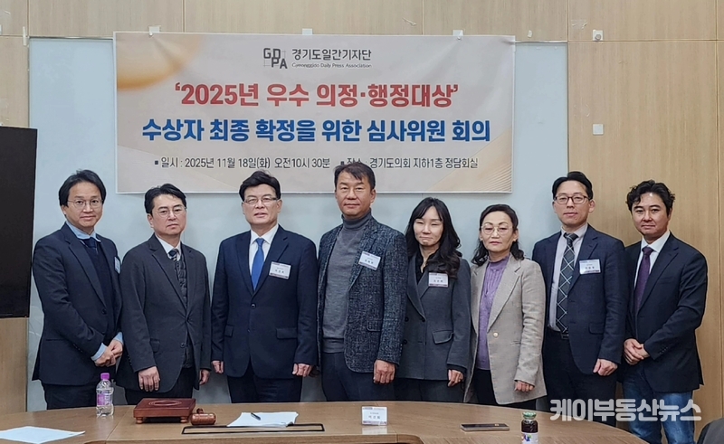 케이부동산뉴스 김교민 기자 | 경기도일간기자단(회장 김두일)은 18일(화) 경기도의회 지하1층 정담회의실에서 ‘2025년도 우수의정·행정대상’ 수상자 최종 확정을 위한 외부 심사위원 회의를 개최하고 올해의 최종 수상 명단을 확정했다.