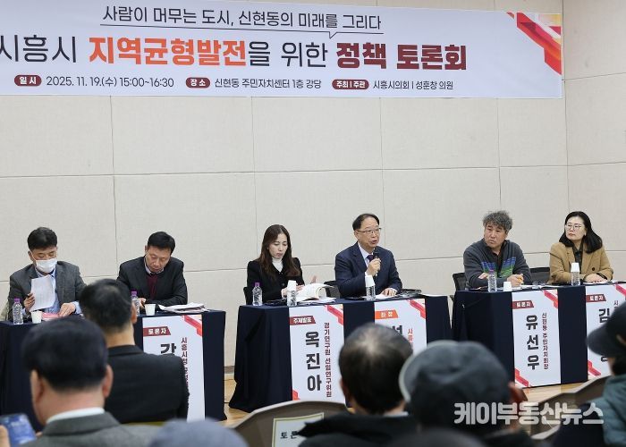 케이부동산뉴스 김교민 기자 | 경기 시흥시의회가 11월 19일 신현동 주민자치센터 1층 강당에서 ‘사람이 머무는 도시, 신현동의 미래를 그리다’를 주제로 지역균형발전 정책토론회를 개최했다.