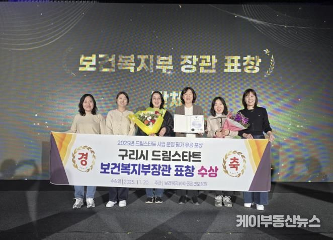케이부동산뉴스 김교민 기자 | 구리시는 2025년도 드림스타트 사업 운영평가에서 우수기관으로 선정되어, 지난 20일 평창에서 열린 ‘2025년 드림스타트 사업 보고대회’에서 보건복지부 장관 표창을 받았다고 밝혔다. 이번 수상은 2018년, 2022년에 이은 세 번째 수상이다.