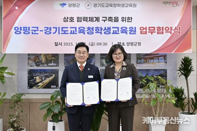 케이부동산뉴스 김교민 기자 | 양평군은 11월 21일, 경기도교육청학생교육원과 지역기반의 체험 중심 교육 활성화 및 상호 협력체계 구축을 위한 업무협약을 체결했다.