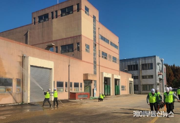 이번 훈련은 시설 내 설비동에서 화재가 발생한 상황을 가정해 진행됐으며, ▲초기 화재 진압 ▲신속한 현장 대피 ▲응급환자 이송 ▲소화기 사용 교육 등 실제 상황을 대비한 단계별 대응 절차를 중점적으로 훈련을 실시했다.