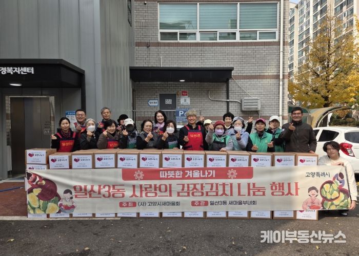 케이부동산뉴스 김교민 기자 | 고양특례시 일산서구 일산3동 새마을부녀회는 지난 20일, 저소득층의 따뜻한 겨울나기를 위한 ‘사랑의 김장김치 나눔 행사’를 진행했다고 밝혔다.