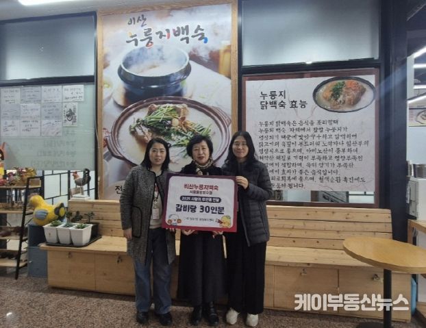 케이부동산뉴스 김교민 기자 | 비산누룽지백숙 물왕호수점이 지난 11월 21일 추운 겨울 소외된 이웃에게 따뜻한 음식을 전하고자 정왕1동 취약계층을 위해 갈비탕 30인분을 후원했다.