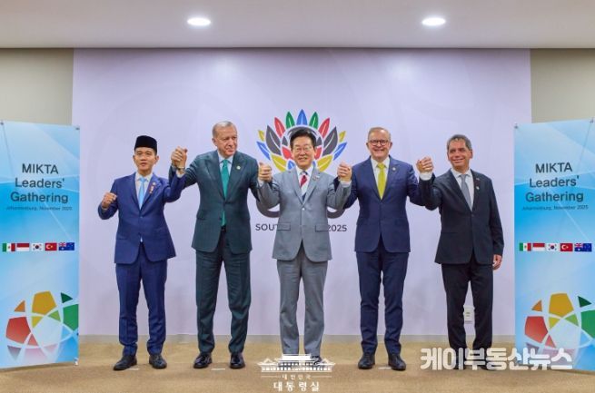 케이부동산뉴스 김교민 기자 | 주요 20개국(G20) 정상회의 참석을 위해 남아프리카공화국을 방문한 이재명 대통령은22일(현지시간) 오후 우리나라, 멕시코, 인도네시아, 튀르키예, 호주 5개국으로 구성된 믹타(MIKTA) 회원국 정상들과 회동했다.