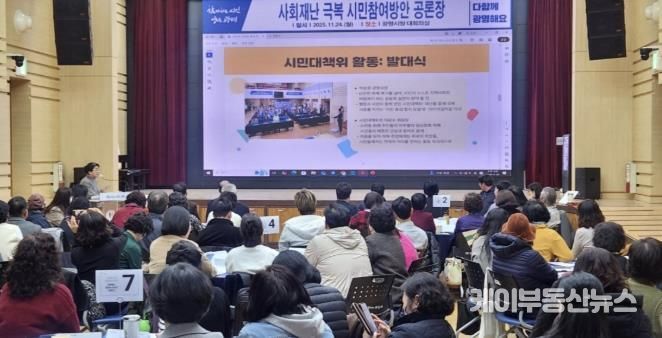 시는 지난 24일 시청 대회의실에서 ‘사회재난 극복 시민참여 방안 공론장’을 개최해 80여 명의 시민이 직접 사회재난 대응 기준을 논의하는 자리를 마련했다.