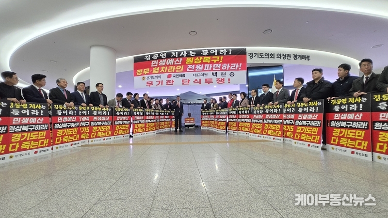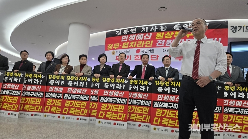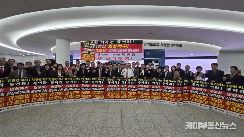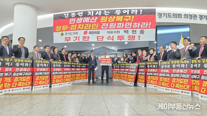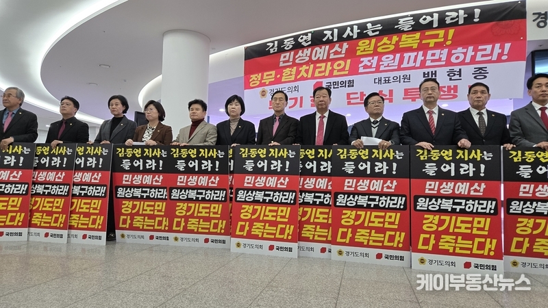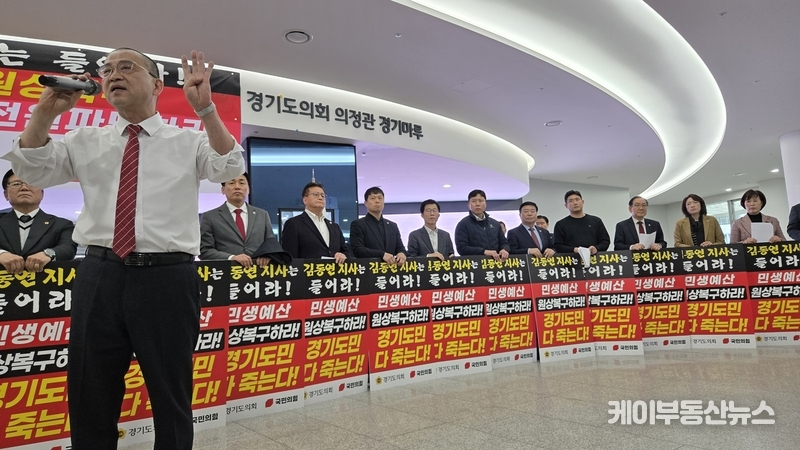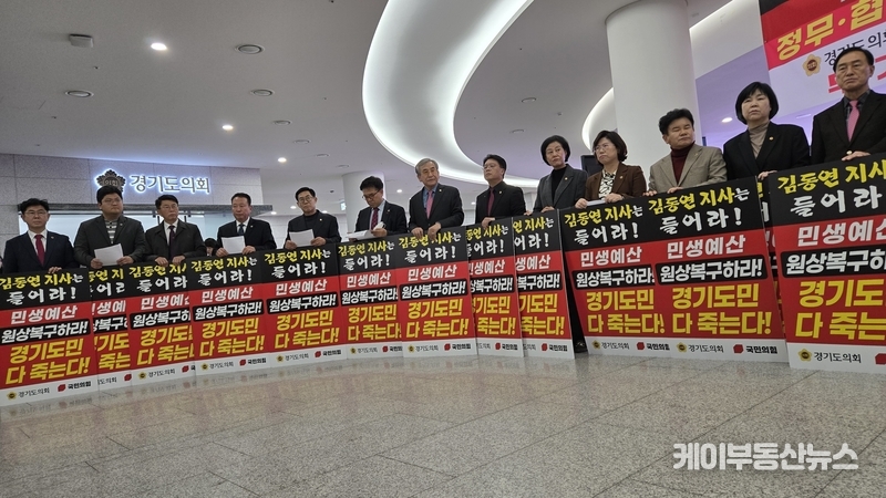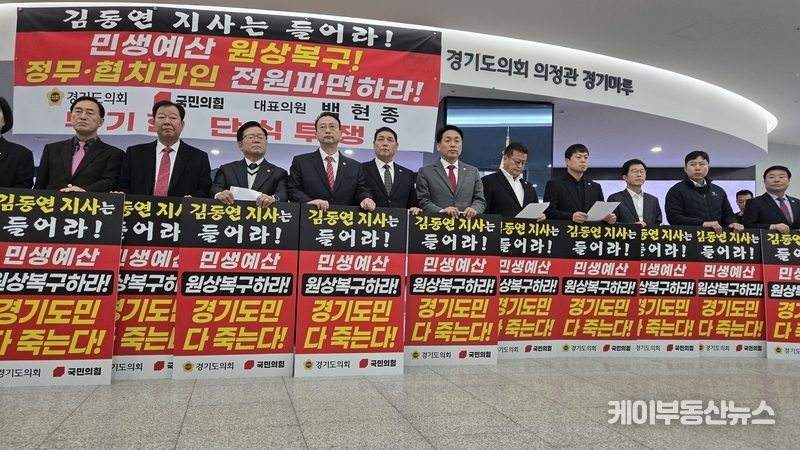 케이부동산뉴스 김교민 기자 | 경기도의회 국민의힘(대표의원 백현종)이 25일, 김동연 지사의 2026년도 예산안을 “도민 복지예산을 대폭 삭감하고 이재명표 예산만 증액한 최악의 ‘이증도감’(李增道減)”이라고 규정하며 강경 대응에 나섰다.