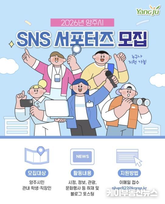 케이부동산뉴스 김교민 기자 | 양주시가 시민과 소통하며 시정 소식과 지역의 숨은 매력을 널리 알릴 '2026년 양주시 SNS 서포터즈'를 오는 12월 1일부터 10일까지 10일간 모집한다.