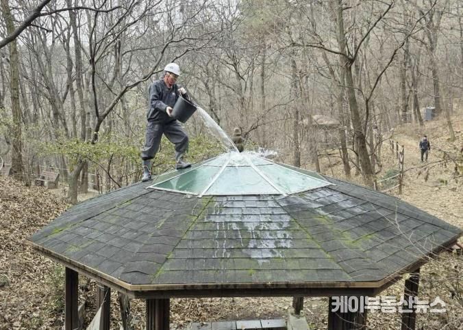 이번 정비는 낙엽이 빗물과 함께 비가림막 상단 및 취수구 주변에 쌓이면서 배수 저해, 미관 저하, 시설물 손상 위험 등이 증가함에 따라 진행됐다. 특히 비가림막 상부에 쌓인 낙엽을 제거하고, 취수구 틈 사이의 오염물과 먼지를 세척해 이용객이 보다 쾌적하게 약수터를 이용할 수 있도록 환경을 정비하는 데 중점을 뒀다.