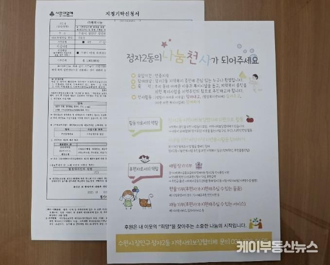 케이부동산뉴스 김교민 기자 | (주)행복나눔은 지난 25일, 정자2동 행정복지센터에 어려운 이웃을 위해 써달라며 1백만원을 기부했다.