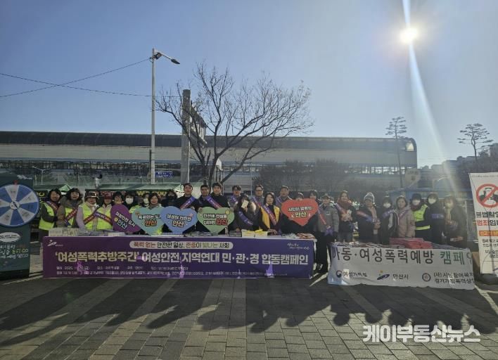 케이부동산뉴스 김교민 기자 | 안산시는 지난달 28일 중앙역 광장 일대에서 ‘폭력 없는 안전한 일상, 존중이 빛나는 사회’라는 슬로건 아래 여성폭력 예방 민·관·경 합동 캠페인을 진행했다고 1일 밝혔다.