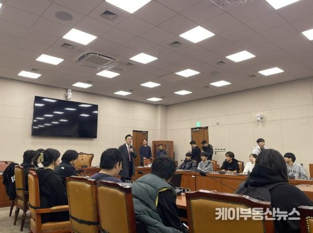케이부동산뉴스 김교민 기자 | (재)연천군청소년육성재단(연천군청소년수련관)은 교육발전특구 사업의 일환인 직업체험 이뤄DREAM 국회의원 프로그램을 청산중학교 대상으로 11월 27일 운영했다고 밝혔다. 청산중학교 3학년 학생 18명은 이날 국회의사당을 직접 방문해 프로그램에 참여했다.